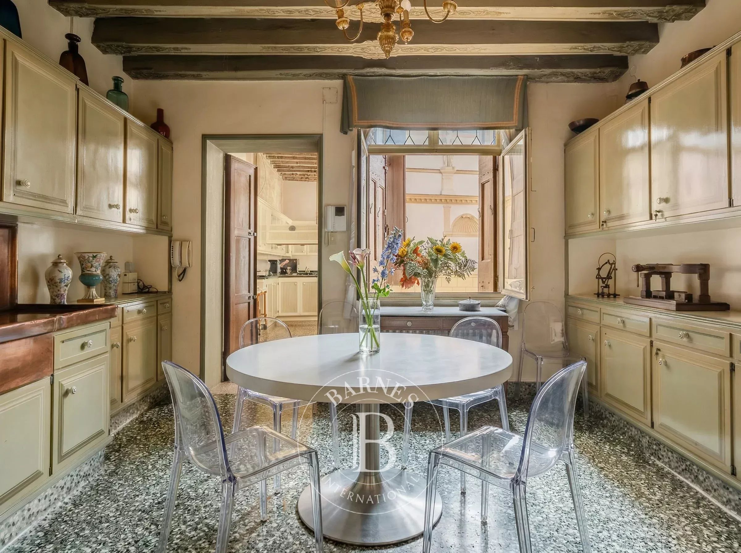 Elevator, double-glazed windows, fly screens, and both private and shared spaces complete a property designed for contemporary living within a historically exceptional context. Possibility to acquire 2 parking spaces within the courtyard and a restored cellar.