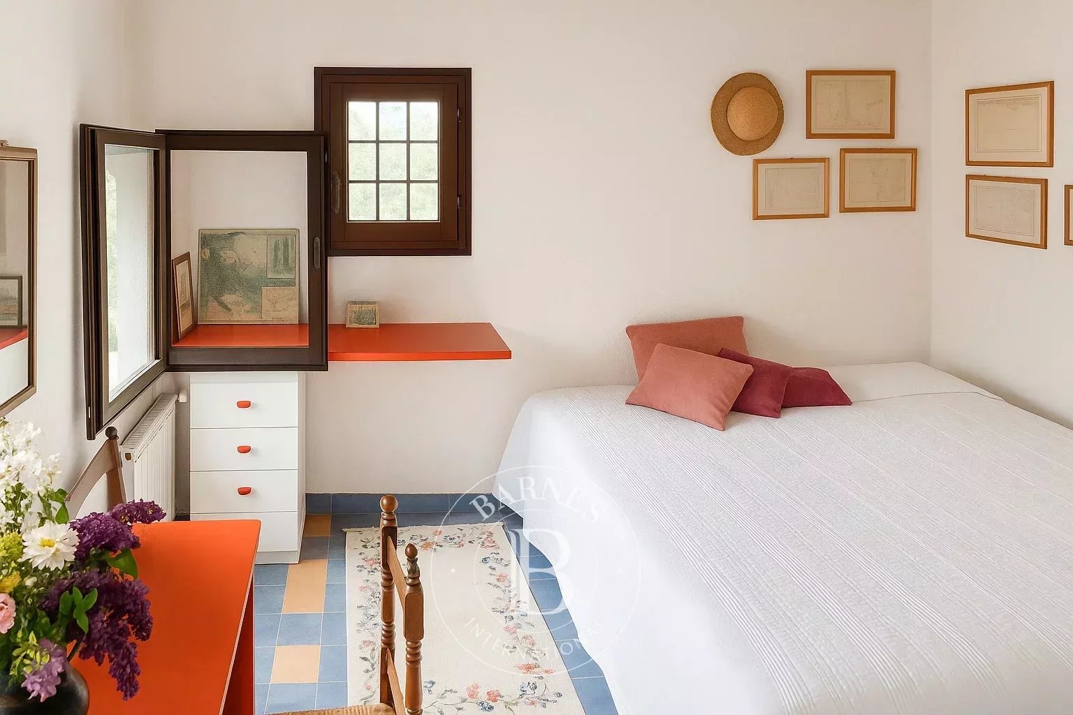 Concepita come un atelier abitativo, la casa si articola intorno a un ampio salone-studio, fulcro del vivere e del creare, arricchito da dettagli architettonici ricercati e da opere d’arte che ne raccontano l’anima. Tra queste, spicca un murales originale realizzato da Erica Jong, che rende omaggio allo spirito libero e cosmopolita del luogo.