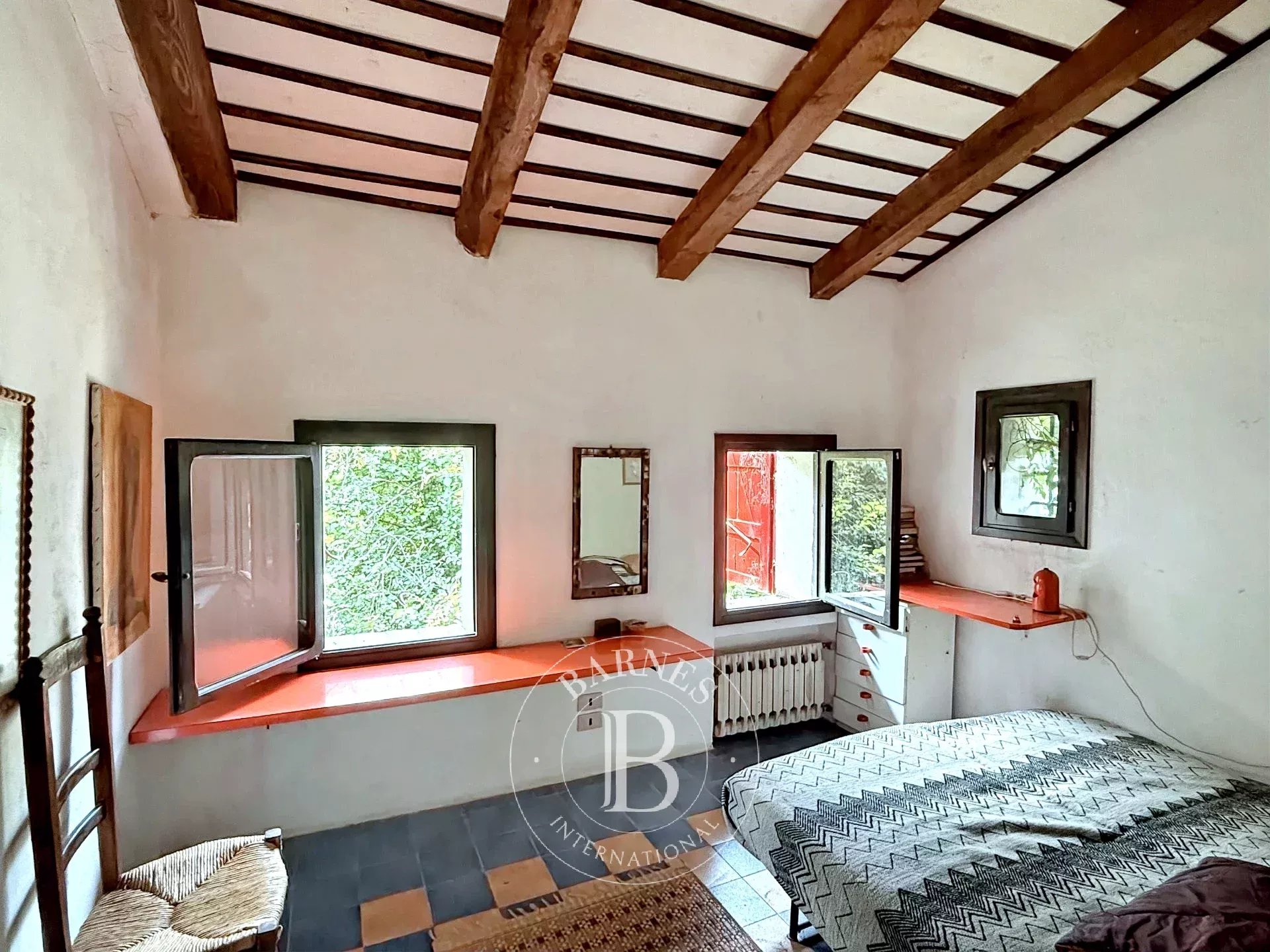 Il corpo principale, di circa 126 mq, ospita due camere da letto e un bagno, uno studio, una cucina e un ampio soggiorno, ambienti caratterizzati da un’atmosfera calda e autentica. Nell’annesso di circa 40 mq si trova un’ulteriore camera con cucina e bagno, ideale per ospiti o per creare uno spazio indipendente. Entrambe le unità sono dotate di caminetto, elemento che conferisce fascino e convivialità agli ambienti. Completa la proprietà una terza camera con bagno situata in un piccolo annesso esterno, perfetta come dépendance privata o spazio per artisti in residenza.