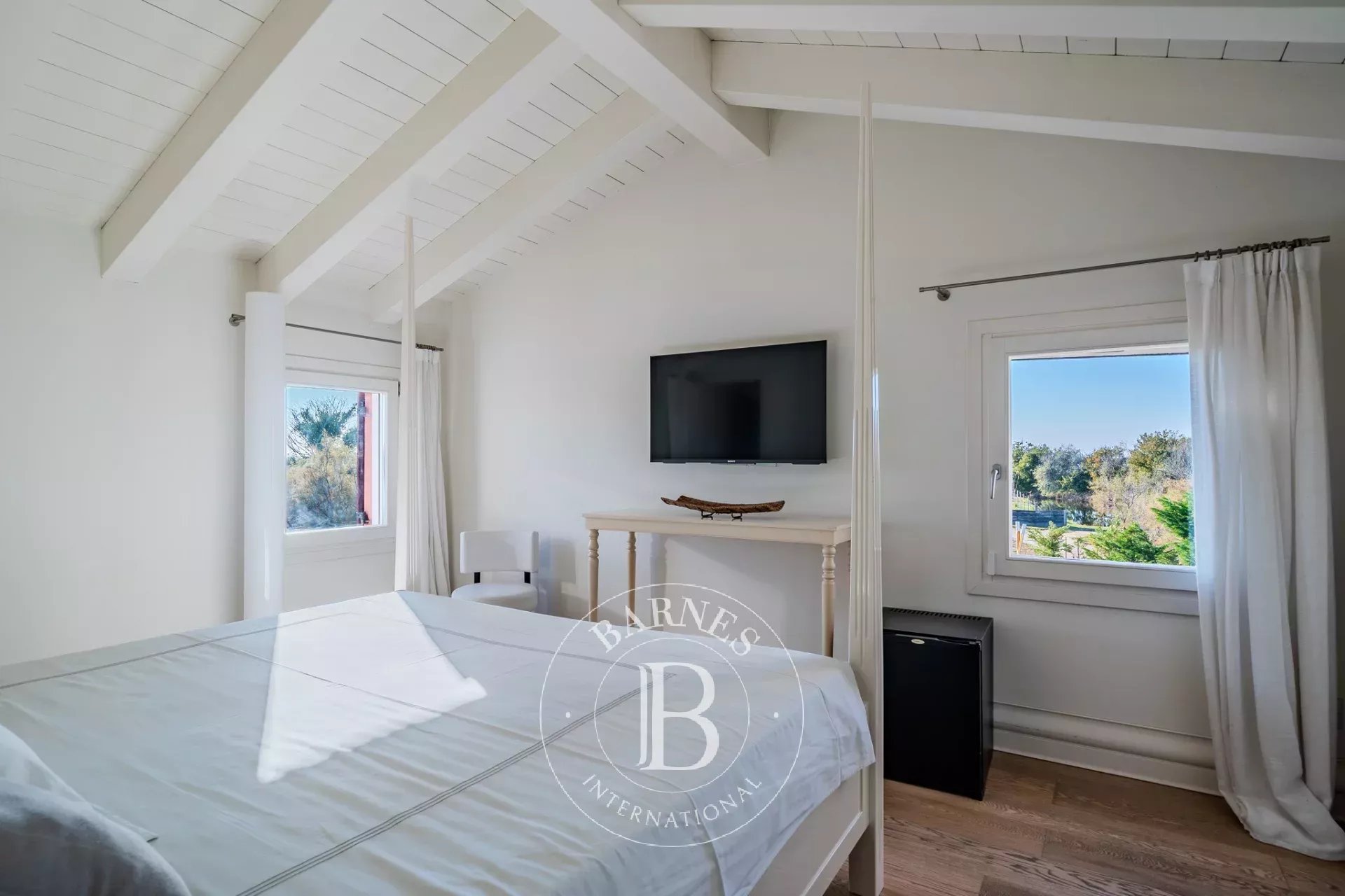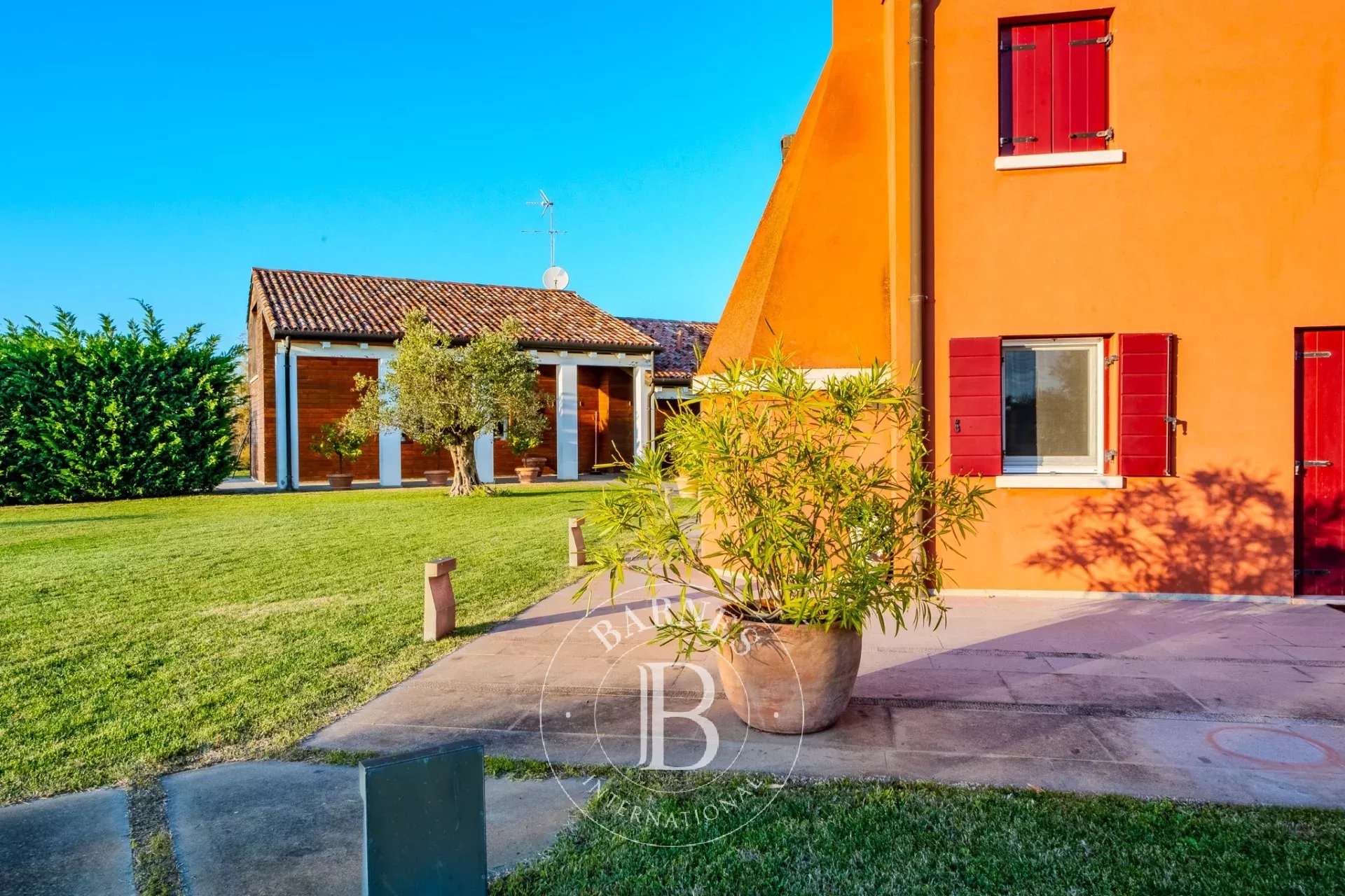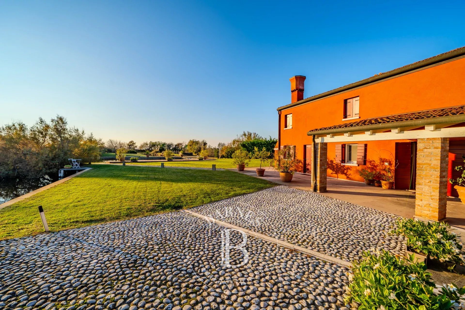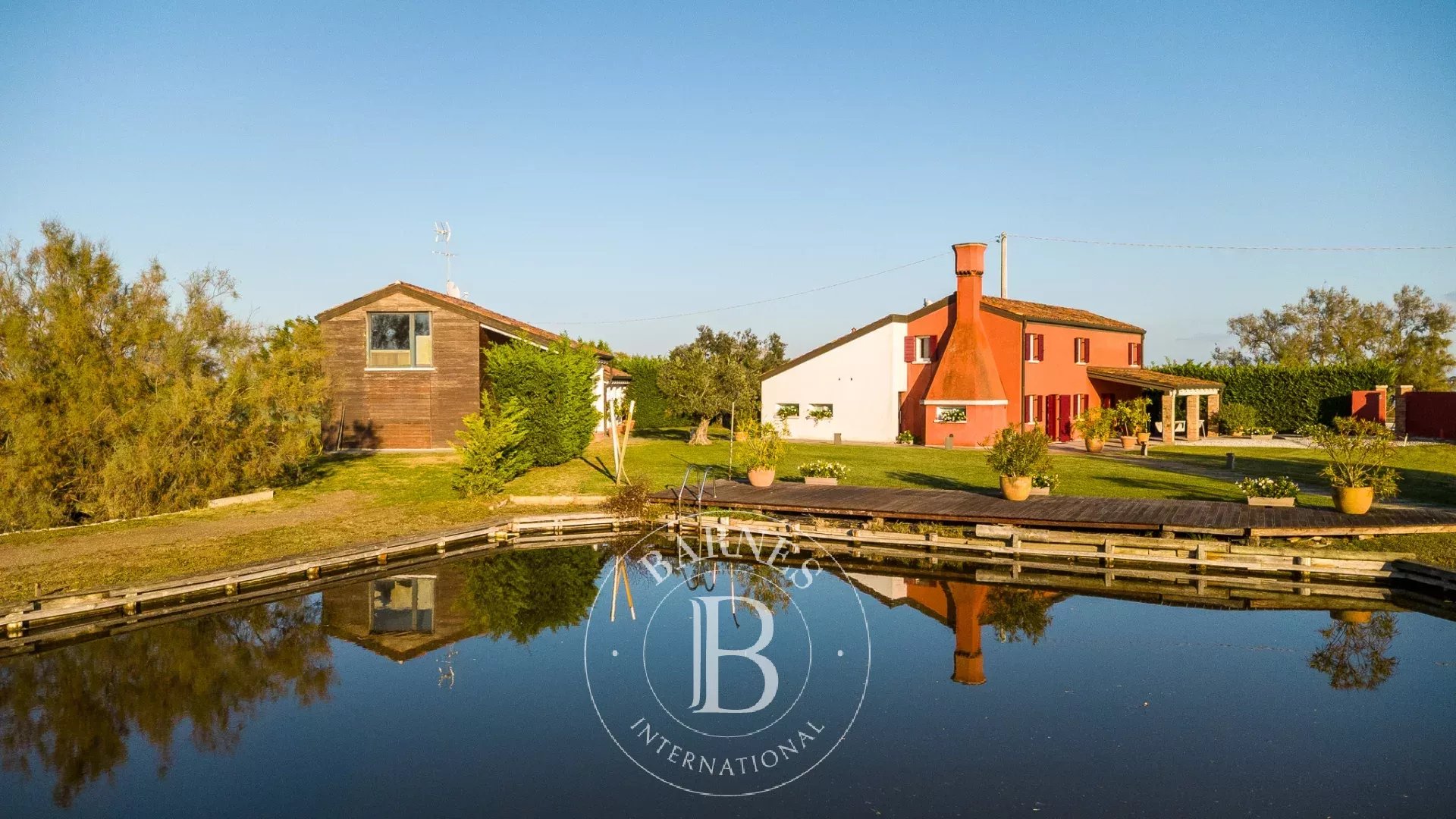 All’interno si trovano edifici restaurati con sobrietà e gusto, perfettamente integrati nel paesaggio: la casa padronale, le strutture dedicate all’ospitalità, dimensioni che evocano la tradizione rurale lagunare, reinterpretata con un’eleganza semplice e contemporanea. Le architetture si specchiano nell’acqua e dialogano con il cielo, trasformando ogni tramonto in uno spettacolo privato.