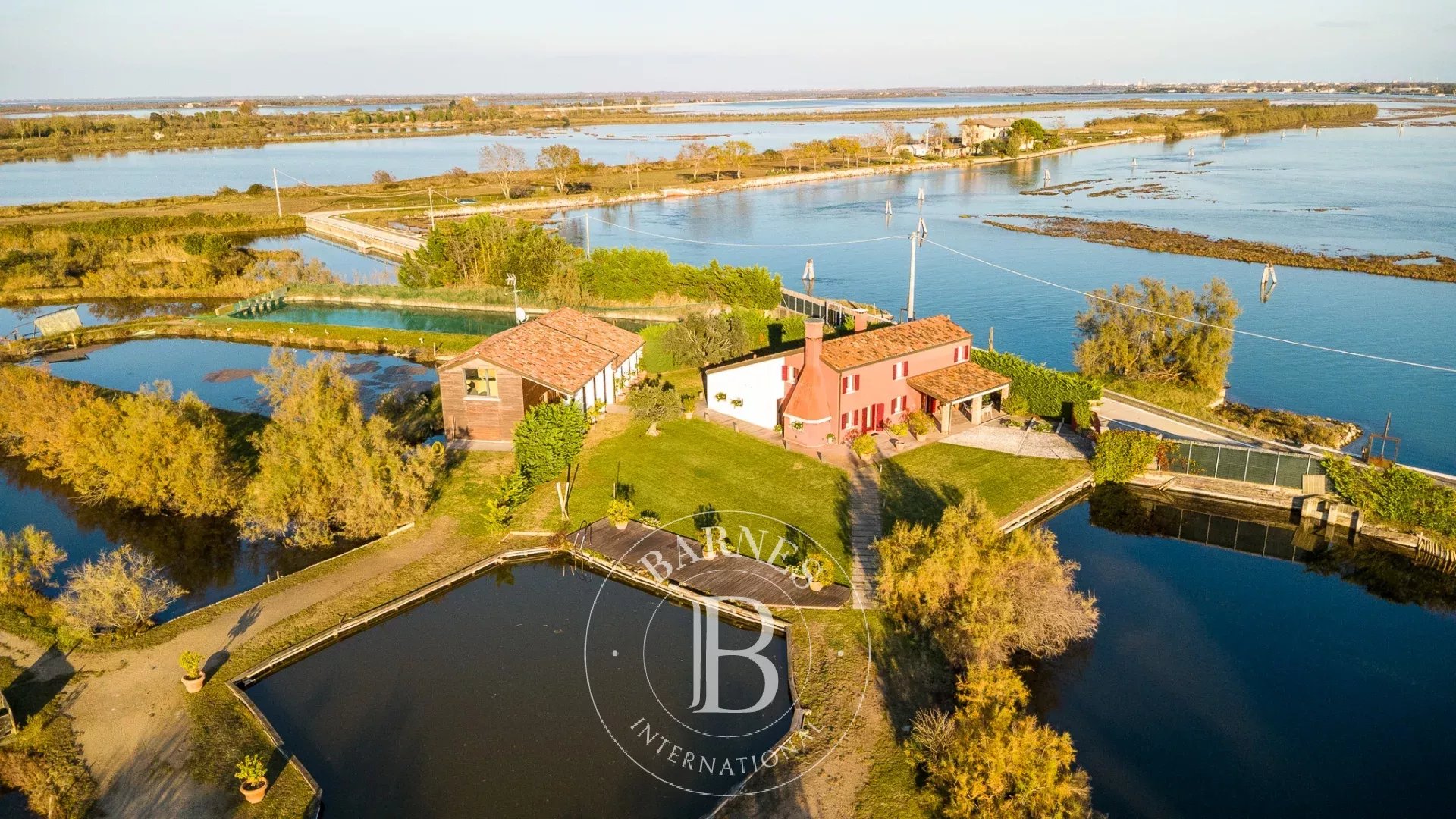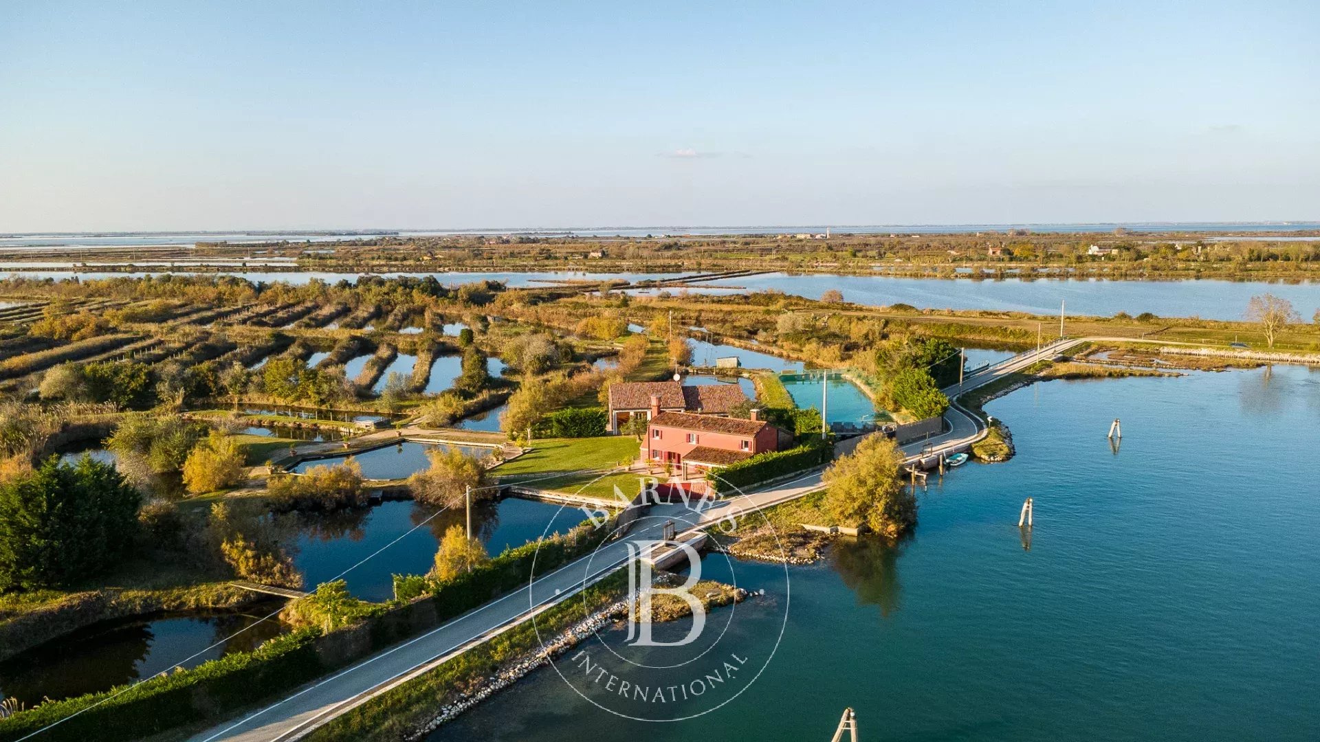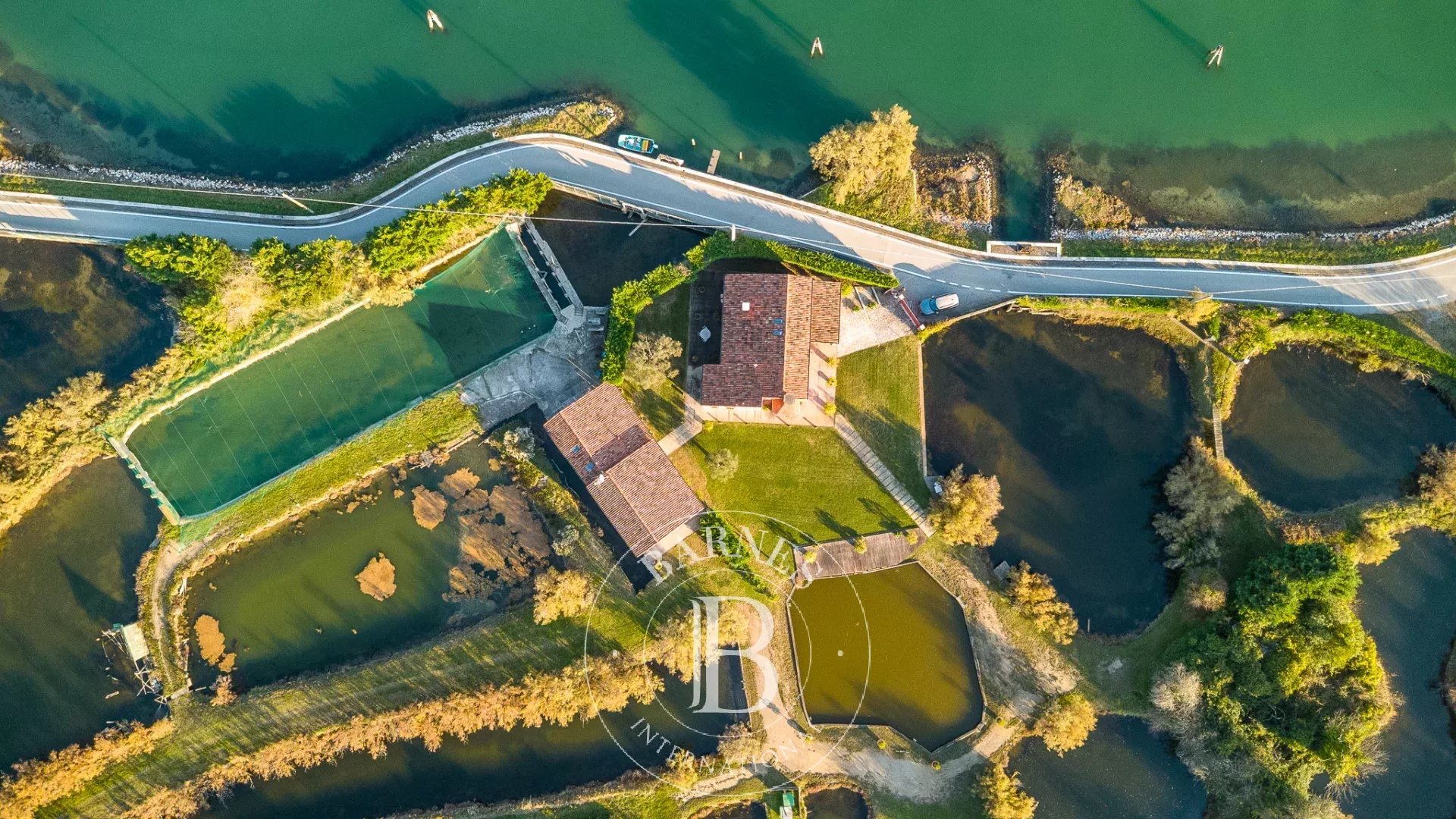 La proprietà si sviluppa come un microcosmo indipendente, un arcipelago di specchi d’acqua, canali, barene, isolotti e argini storici, modellati nei decenni dal lavoro dell’uomo e dalle maree. La dimensione è quella delle grandi valli nobiliari: ampi spazi incontaminati, una biodiversità sorprendente, una quiete assoluta, interrotta soltanto dal volo degli uccelli acquatici.