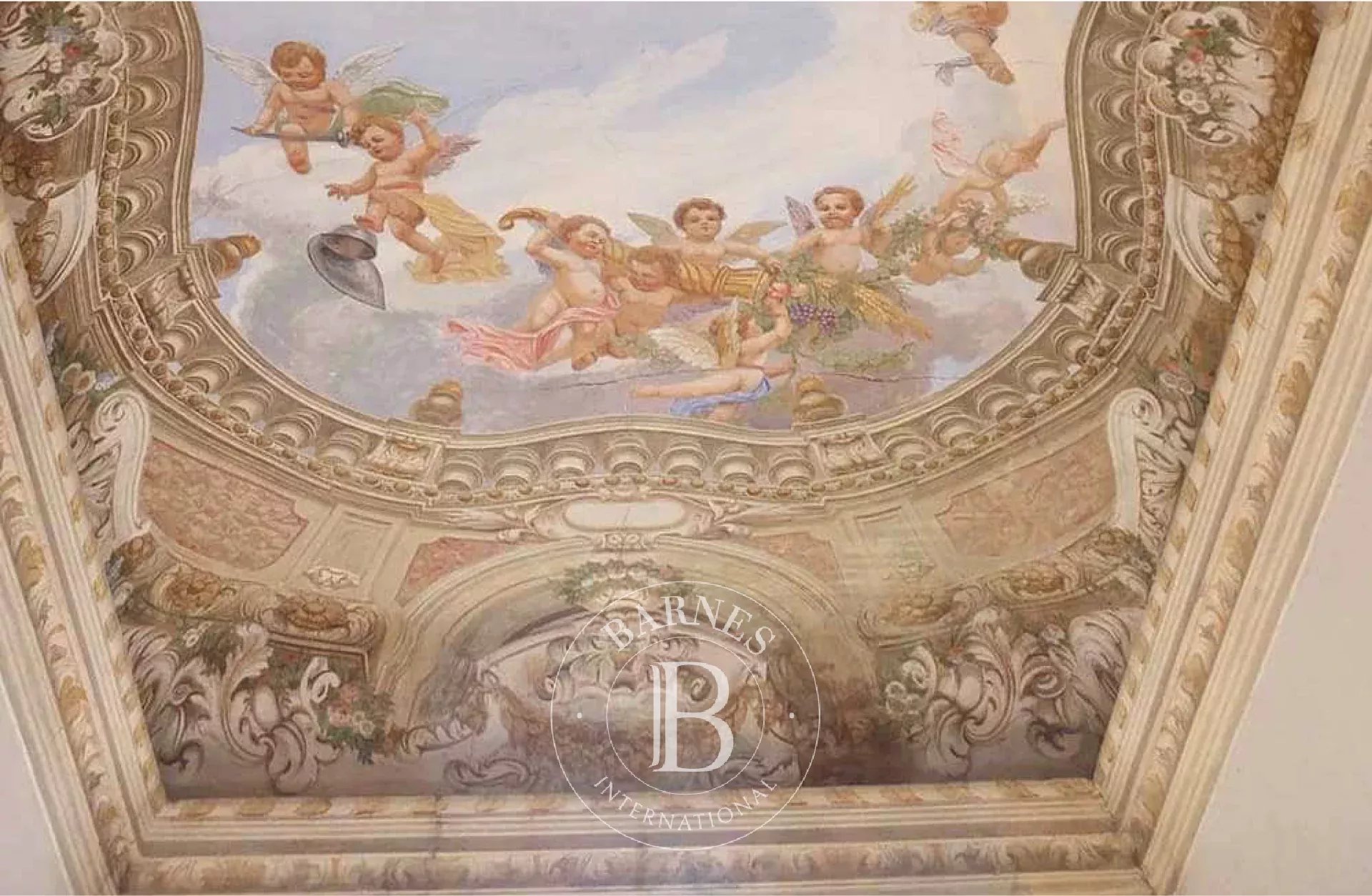 All’interno, la villa conserva preziosi affreschi e cicli pittorici realizzati da maestri come Giuseppe Montanari e Marcola, oggetto di restauro conservativo integrale terminato nel 2015, che trasformano ogni ambiente in un autentico scrigno d’arte e di storia.