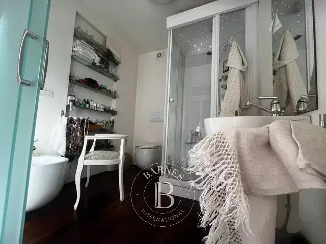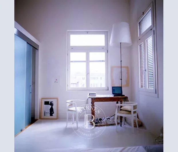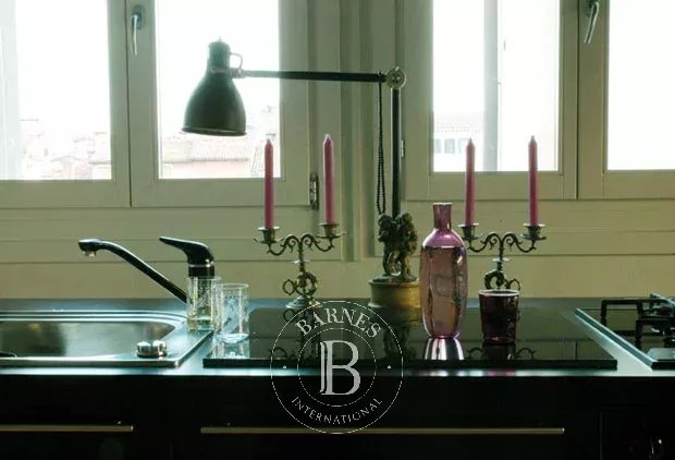 In Santa Croce, un appartamento che alterna rigore e calore: zona notte essenziale e luminosa, living più avvolgente con richiami alla tradizione veneziana. La distribuzione è contemporanea, mentre i dettagli d’arredo raccontano un gusto classico e una storia personale. La camera da letto è appartata rispetto alla zona giorno. L’arredo è ridotto all’essenziale e il bianco, scelto per pareti e pavimento, amplifica luce e silenzio. Una porta scorrevole in vetro separa la stanza dal bagno, mantenendo l’impronta minimale e funzionale. Nel living l’atmosfera si scalda grazie al terrazzo veneziano, materia domestica e accogliente. Il tavolo da pranzo in legno è circondato da sedie diverse per forma e stile, una scelta volutamente non uniforme che aggiunge carattere e profondità. L’angolo studio gode della luce delle finestre, valorizzata dalle superfici chiare, con oggetti e arte raccolti nel tempo.