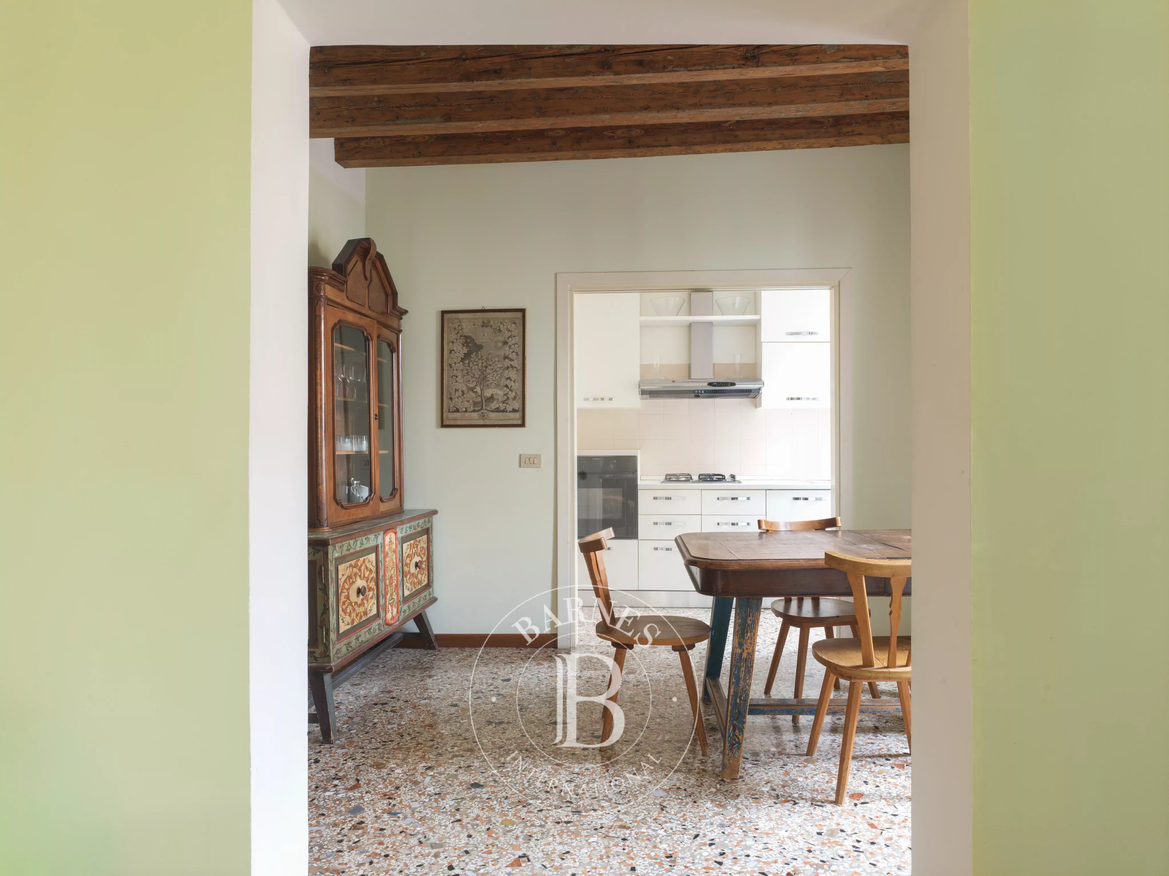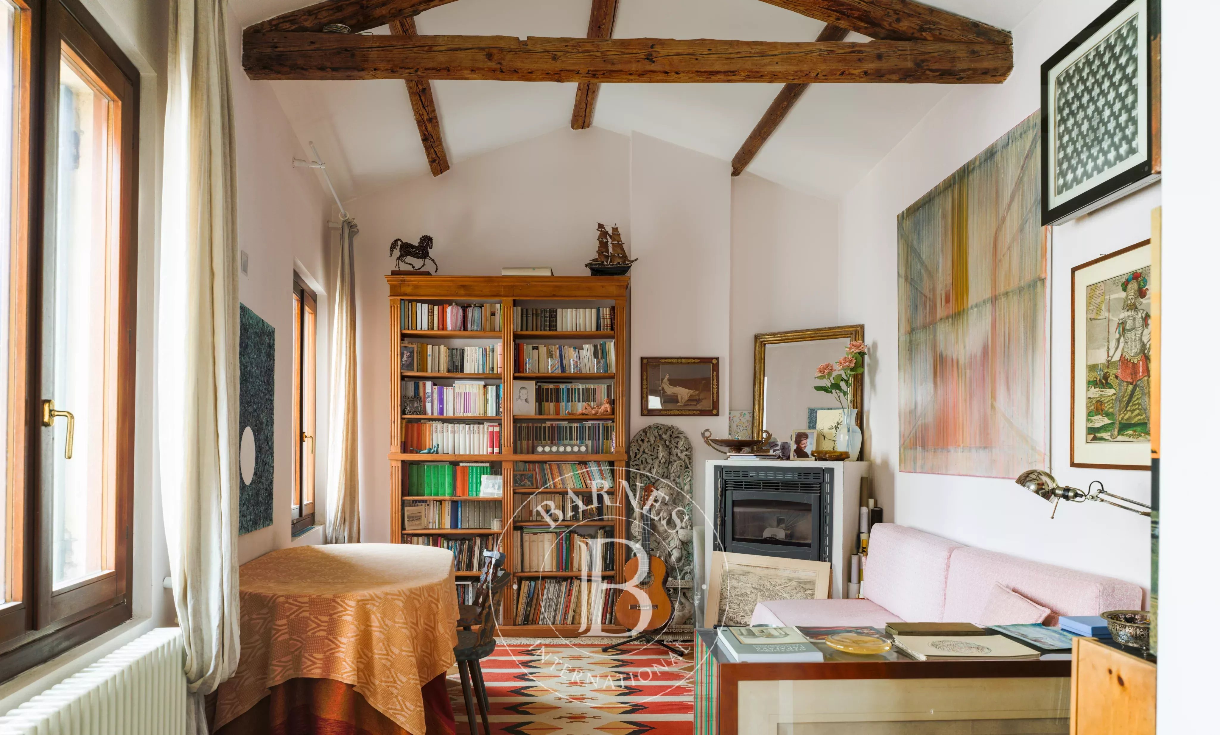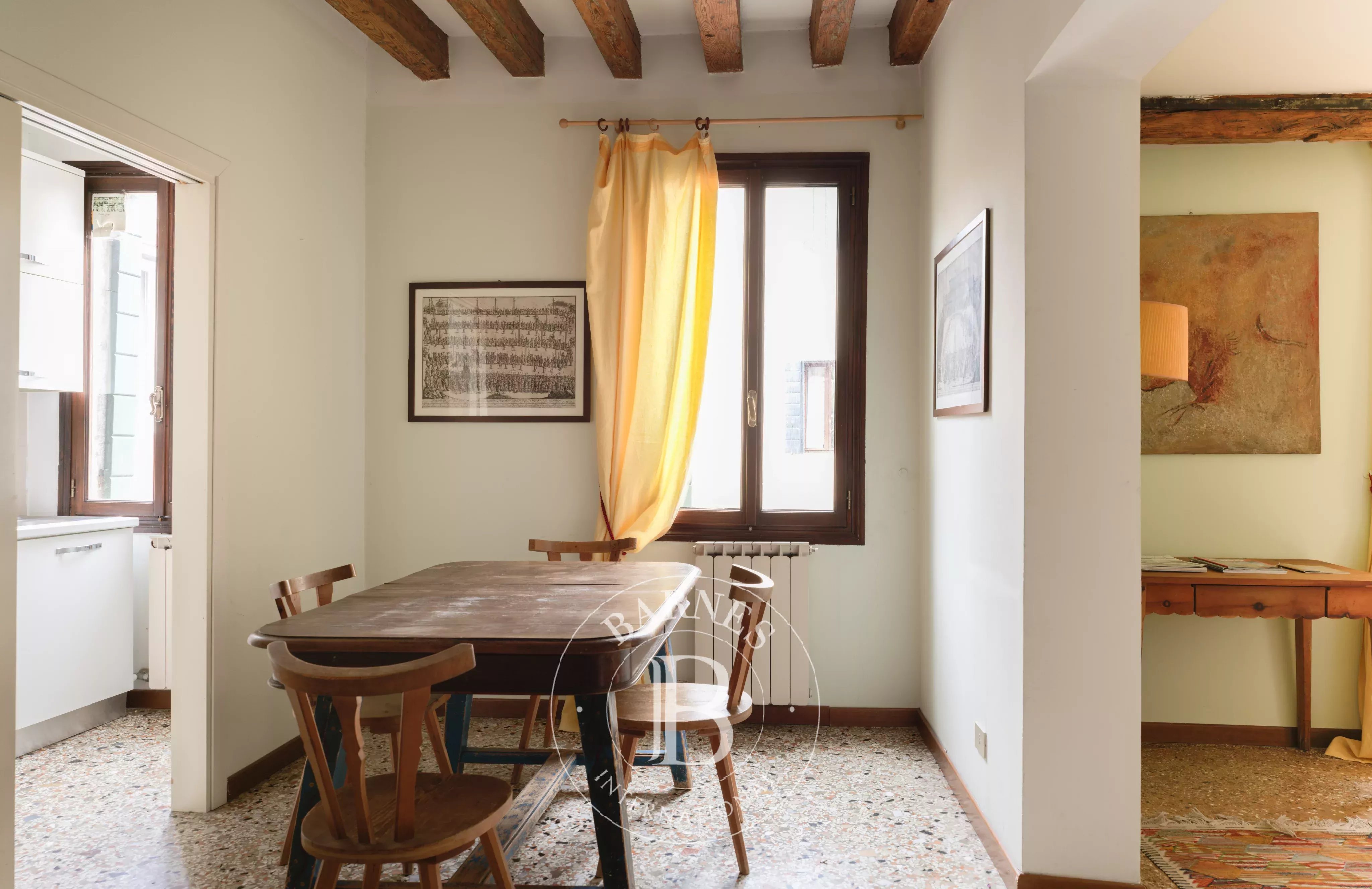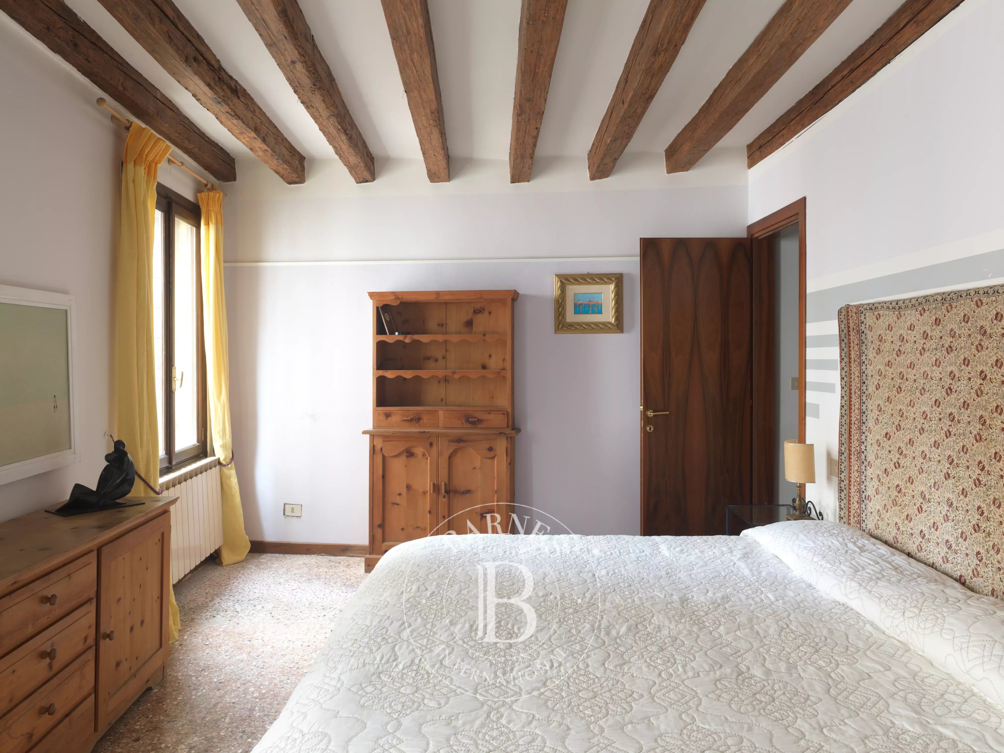 All’esterno, le persiane verdi e la patina del tempo raccontano una continuità naturale con il sestiere: la pietra d’Istria, le tonalità calde del quartiere, le calli che conducono agli studi degli artisti e ai palazzi che sfiorano il Canal Grande. Il palazzetto invita a immaginare un restauro di sensibilità contemporanea, capace di celebrare la materia originaria: intonaci naturali, legno, pietra, vetro artistico, tessuti veneziani. Una palette sofisticata e luminosa.