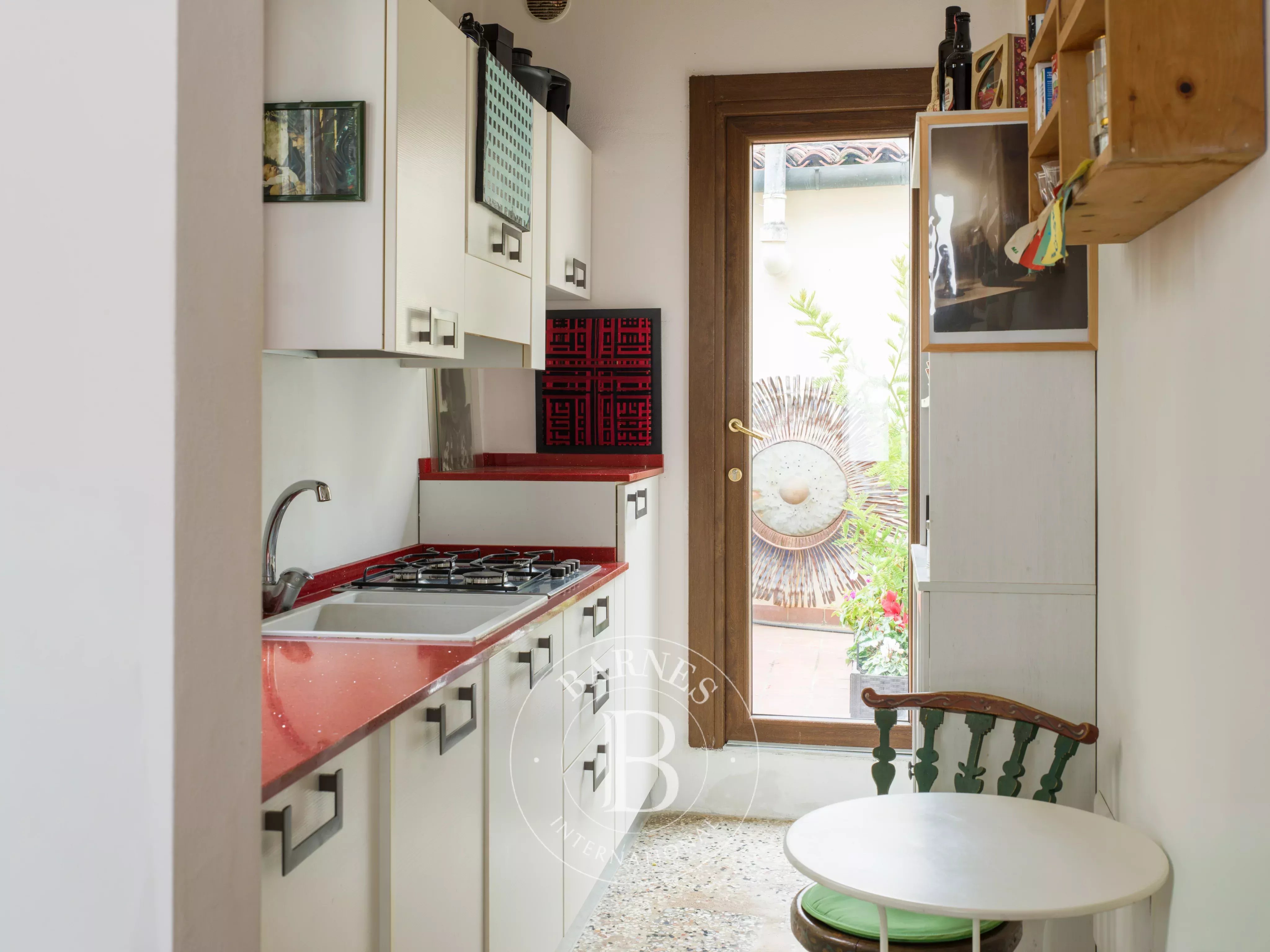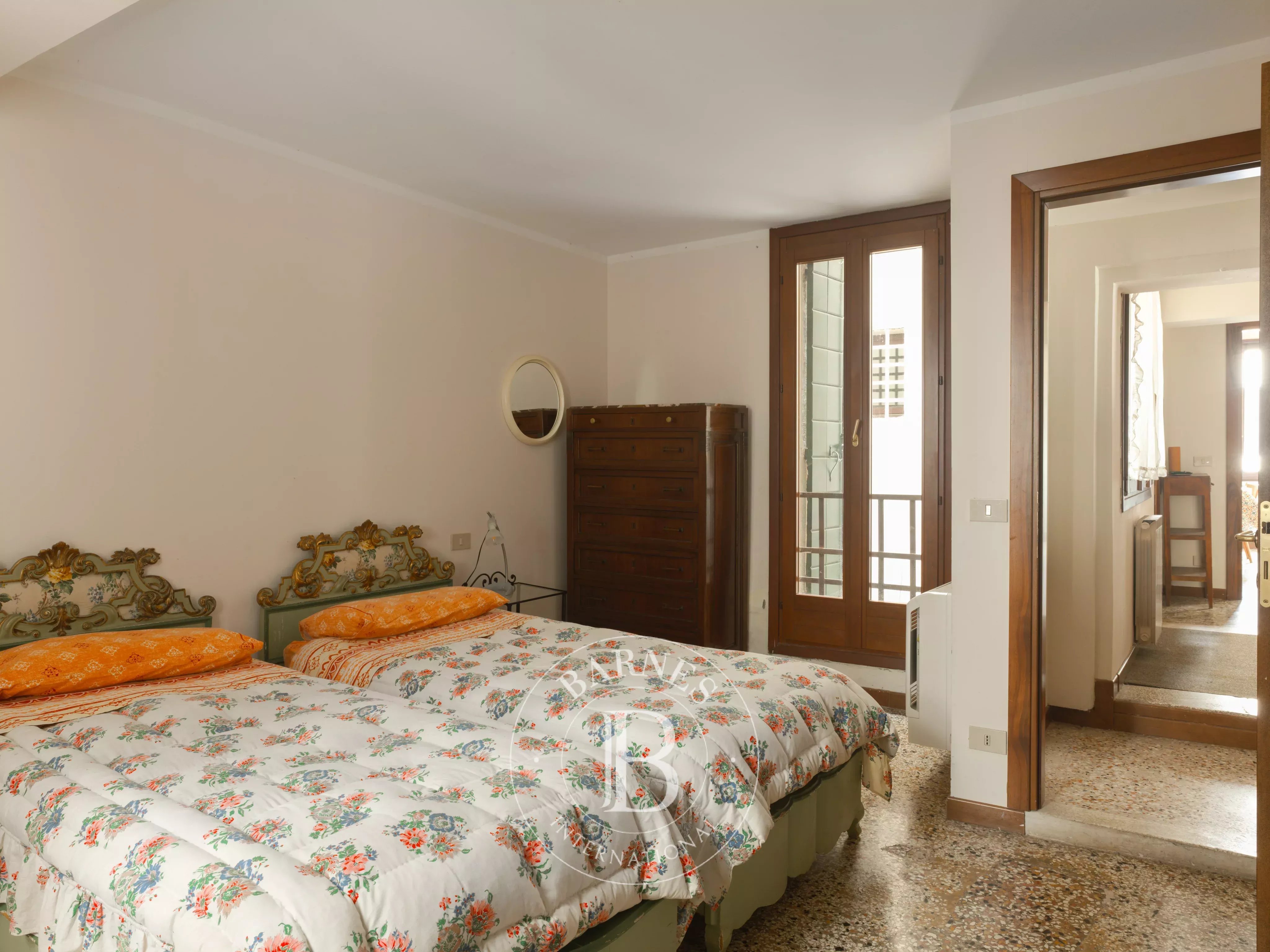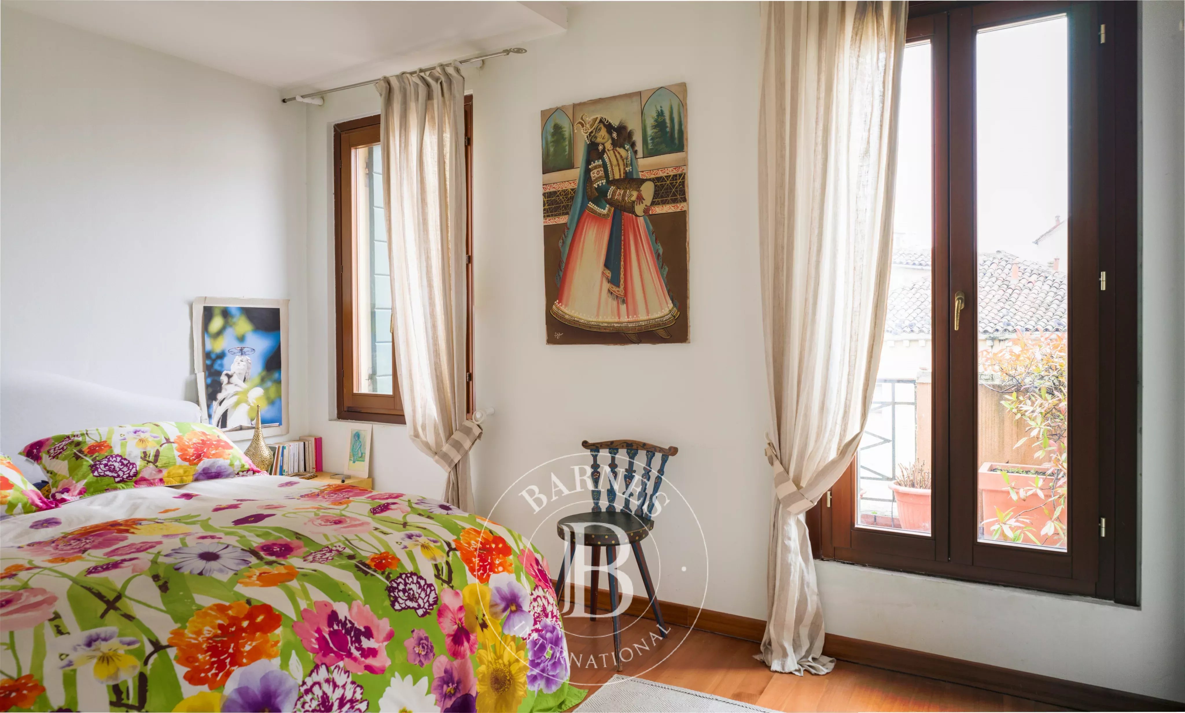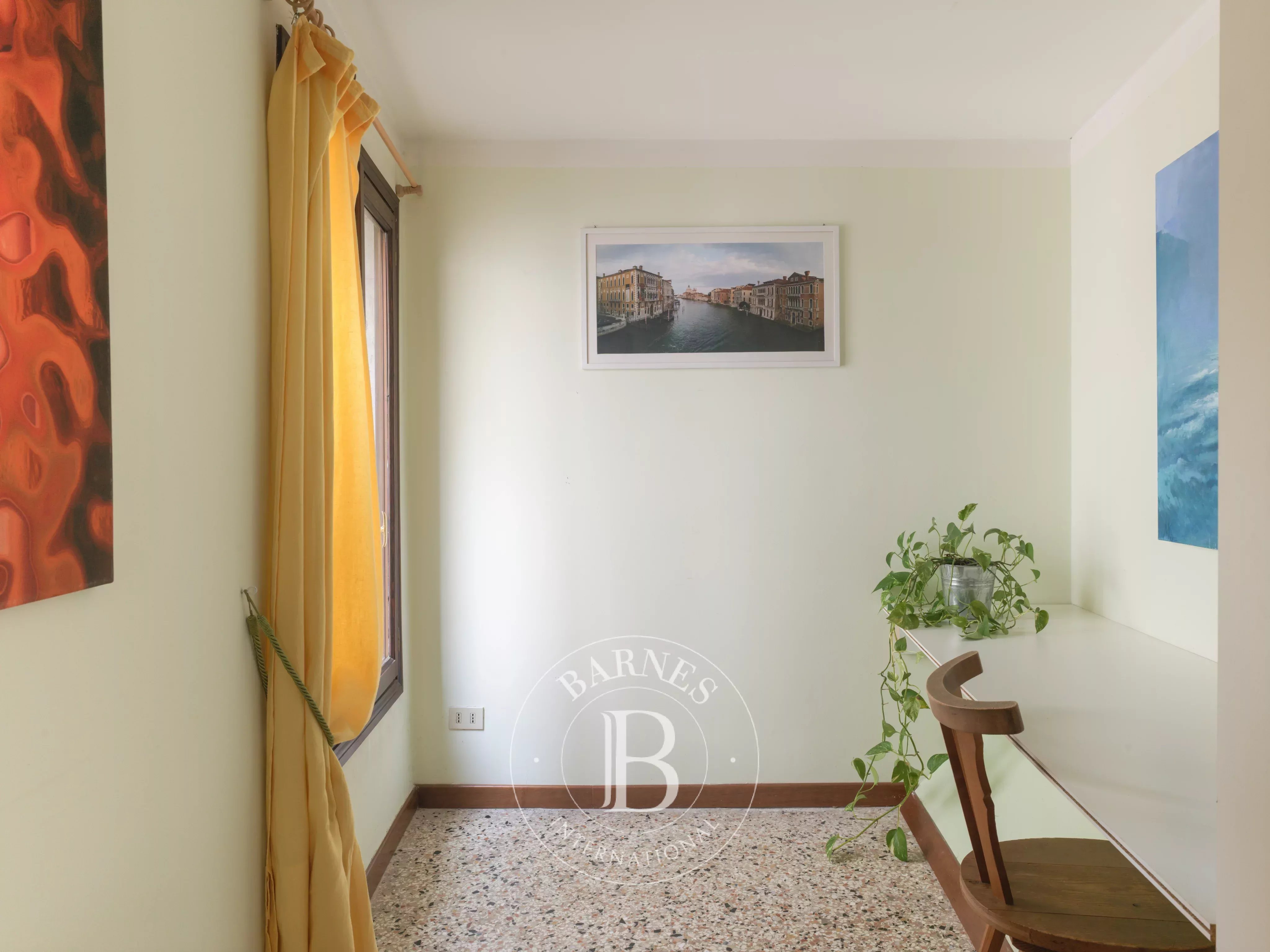 Accanto alla galleria, la corte privata di 18 mq aggiunge un lusso silenzioso: un micro-giardino domestico dove il giorno inizia lentamente, tra pietra, luce e il suono lontano dell’acqua. Un’intimità che a Venezia ha un valore inestimabile.