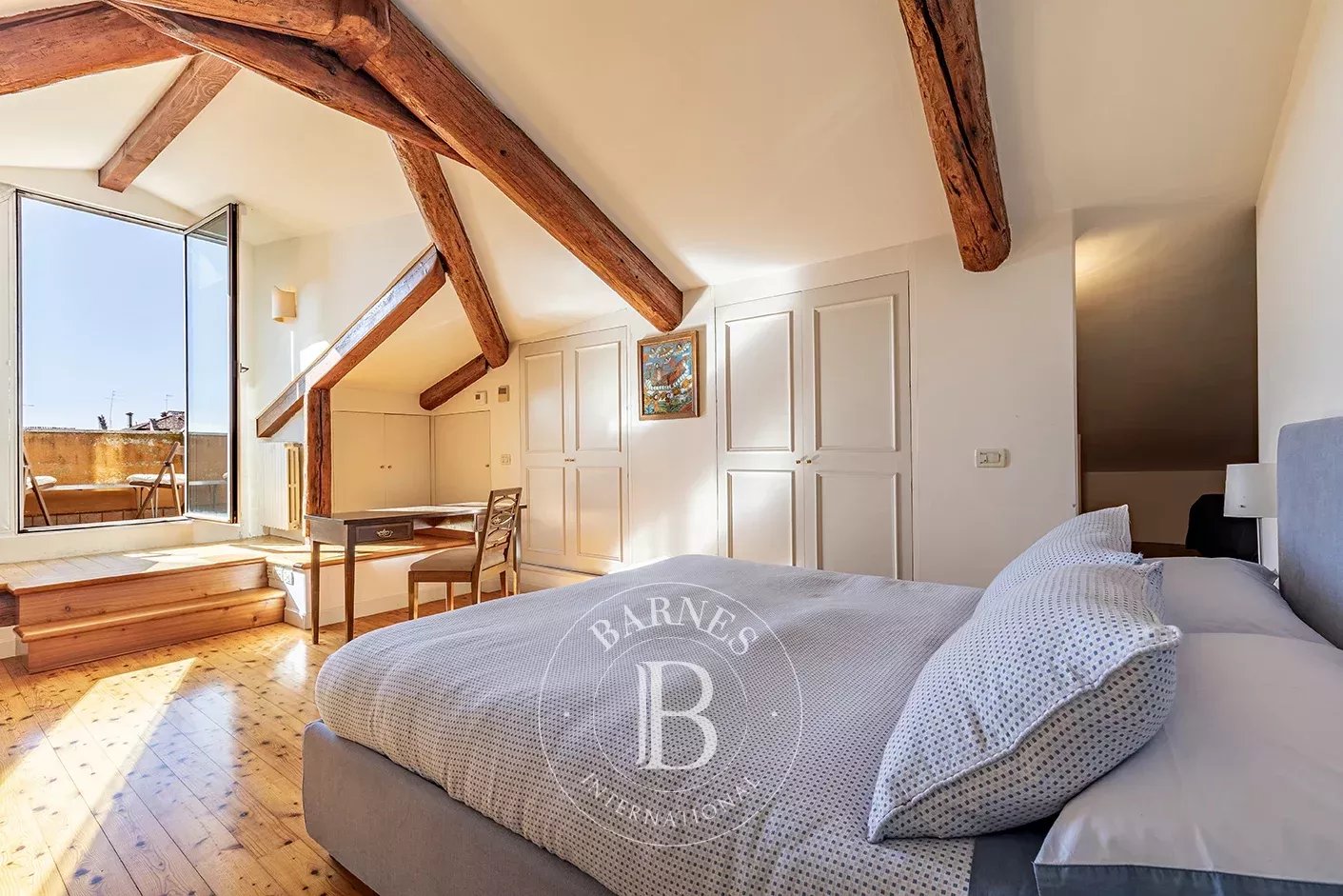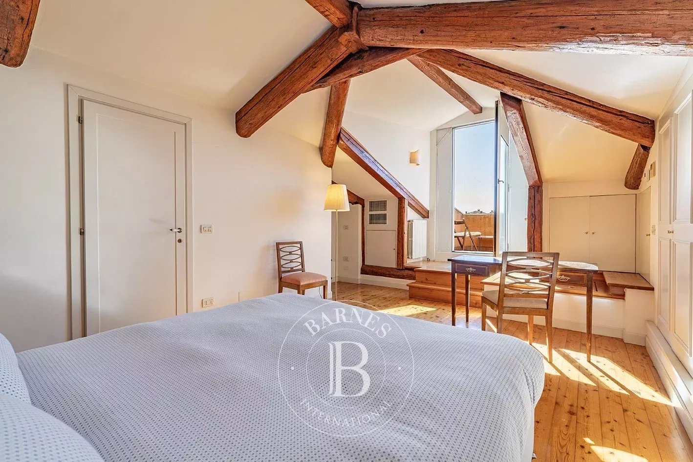 Questa splendida proprietà si affaccia direttamente sul Canale della Giudecca, regalando viste spettacolari sulla laguna e sul bacino di San Marco. L’abitazione si distingue per gli spazi ampi e luminosi, un raffinato equilibrio tra tradizione veneziana e comfort moderni. Il piano principale accoglie un elegante salone con vista sull’acqua, una sala da pranzo separata e una cucina abitabile. La zona notte dispone di tre camere matrimoniali con bagni en suite, un salottino di collegamento e un’ulteriore camera/studio con quarto bagno. Una mansarda con bagno conduce all’altana panoramica, perfetta per cene e momenti di relax all’aperto. Completano la proprietà due ingressi indipendenti e un comodo ascensore privato.