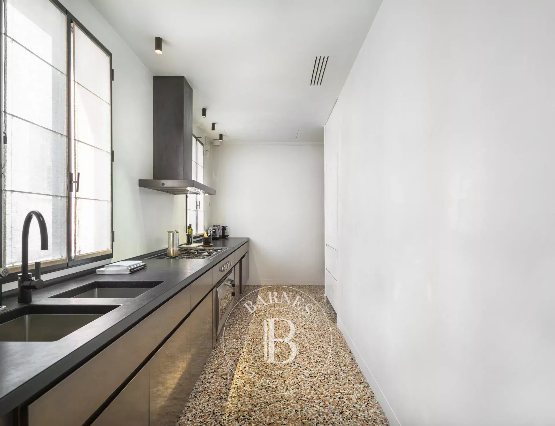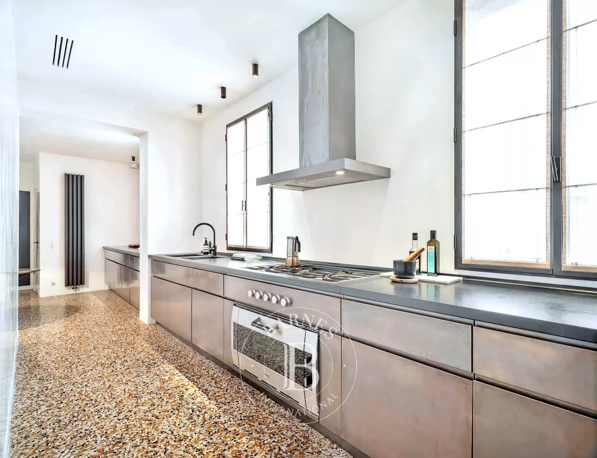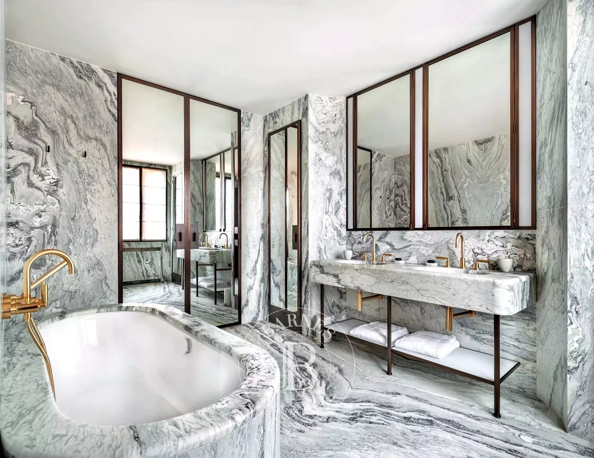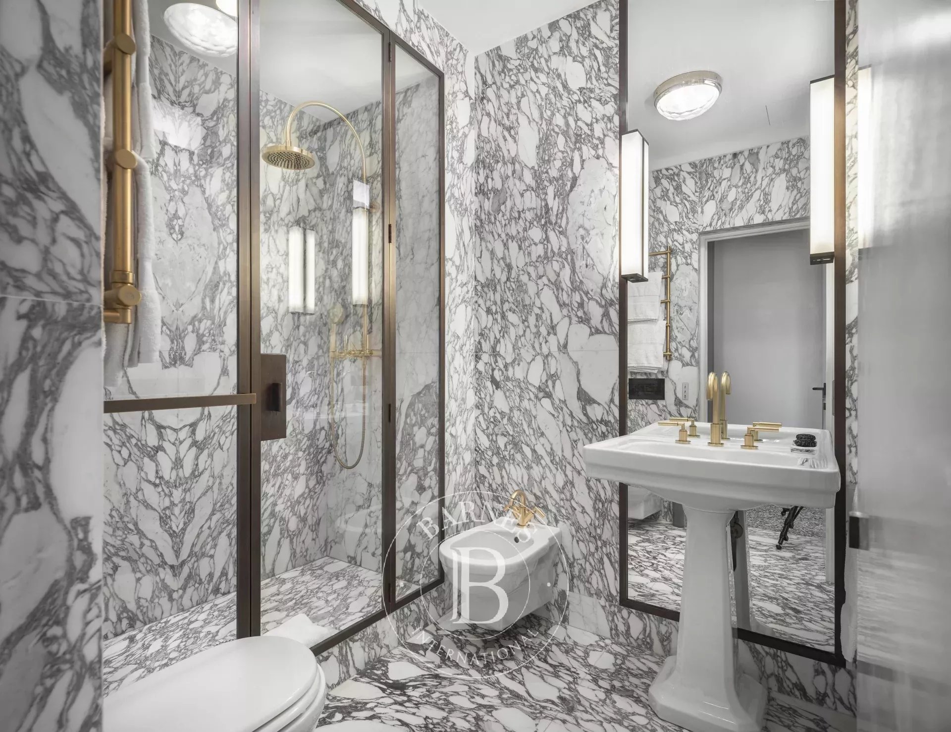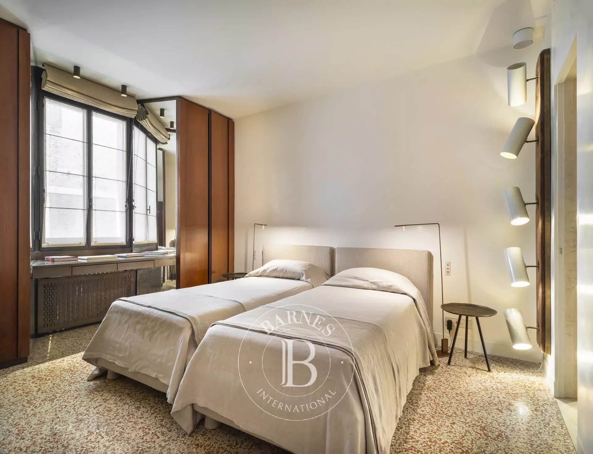 È il posto ideale per coppie o famiglie che vogliono vivere Venezia con stile, senza rinunciare al relax. Il progetto è nato dalla collaborazione tra il proprietario, un noto architetto veneziano e uno dei migliori interior designer francesi. L’ispirazione? L’eleganza razionale di Carlo Scarpa, che si ritrova nei materiali scelti con cura: pavimenti in terrazzo lucido, pareti in marmorino color crema, infissi e dettagli in bronzo. I bagni sono vere e proprie opere d’arte, con lastre di marmo spettacolari che vanno dal pavimento al soffitto come fossero scolpite in un unico blocco.